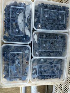 (3)藍精靈:大果(1.0~1.4g),長圓形,早熟。果味甜美,無苦味,少量落果??购垢珊怠旃?、高產(chǎn)、長勢慢。可作為鮮食型品種。