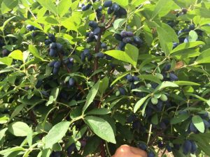 同藍莓、樹莓、穗醋栗等小漿果相比,藍靛果具有栽培適應(yīng)性廣、容易管理等優(yōu)點。在PH4.5~8.5的大多數(shù)類型的土壤中均能生長。有效積溫達到700~800℃,即可滿足其生長發(fā)育的需要。生產(chǎn)中不需要搭架,也不需要埋土防寒。植株無刺,高度適中,果實采收容易,1~2次即可采收完畢?;緵]有病蟲害。